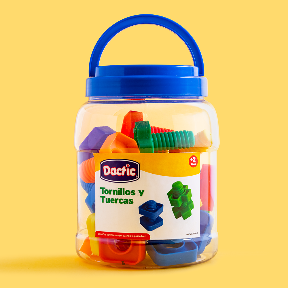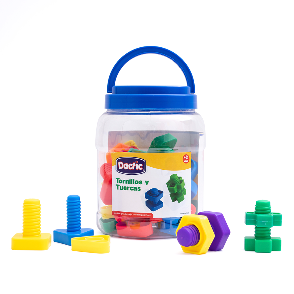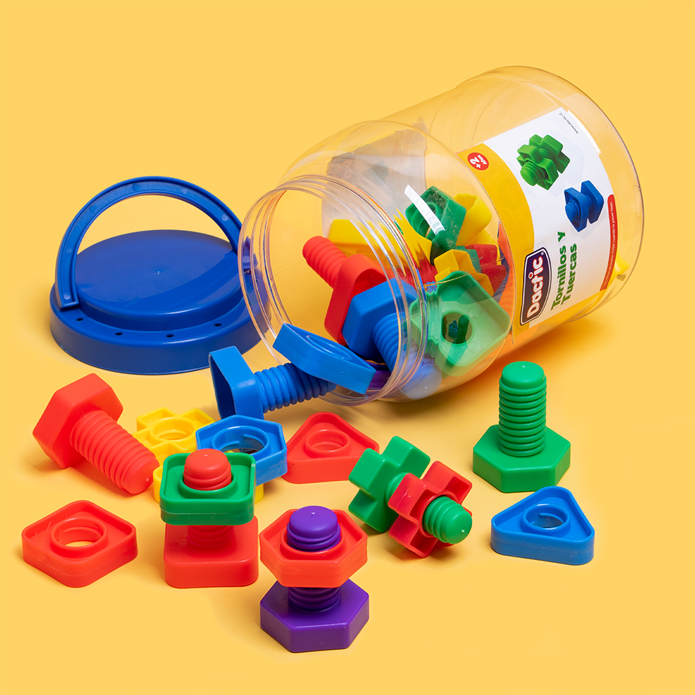 El uso de este material permitirá desarrollar la coordinación motriz mediante el atornillado, fomentar la capacidad creativa y el reconocimiento de formas y colores.