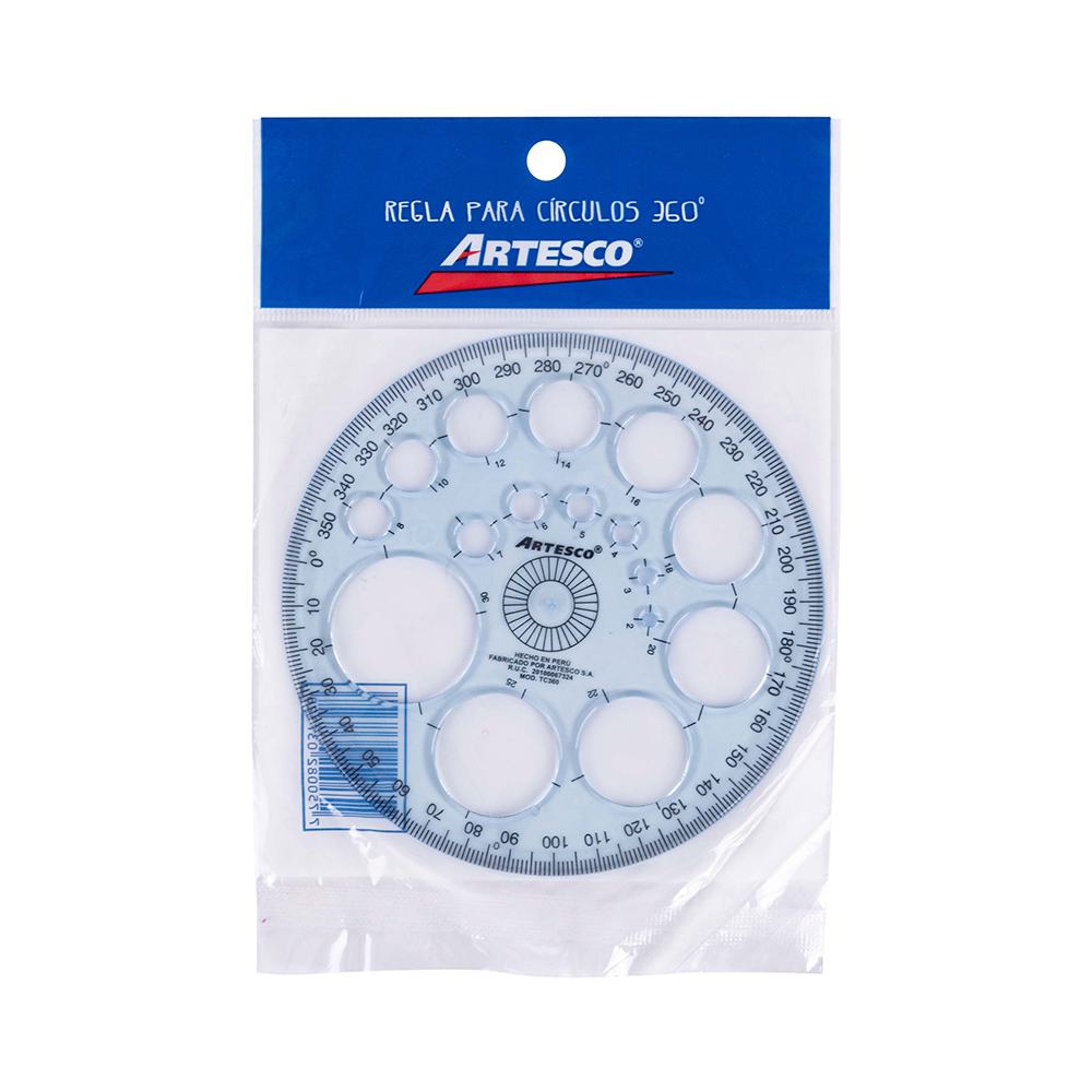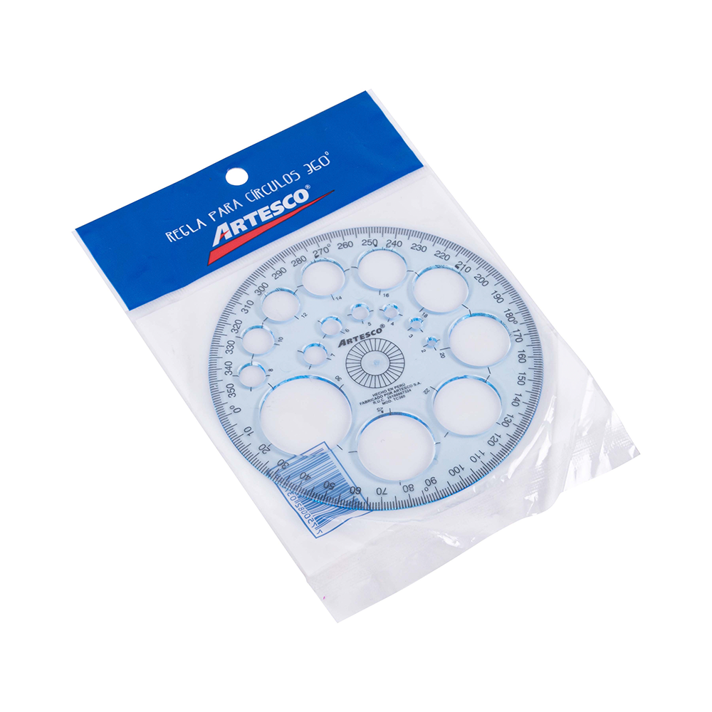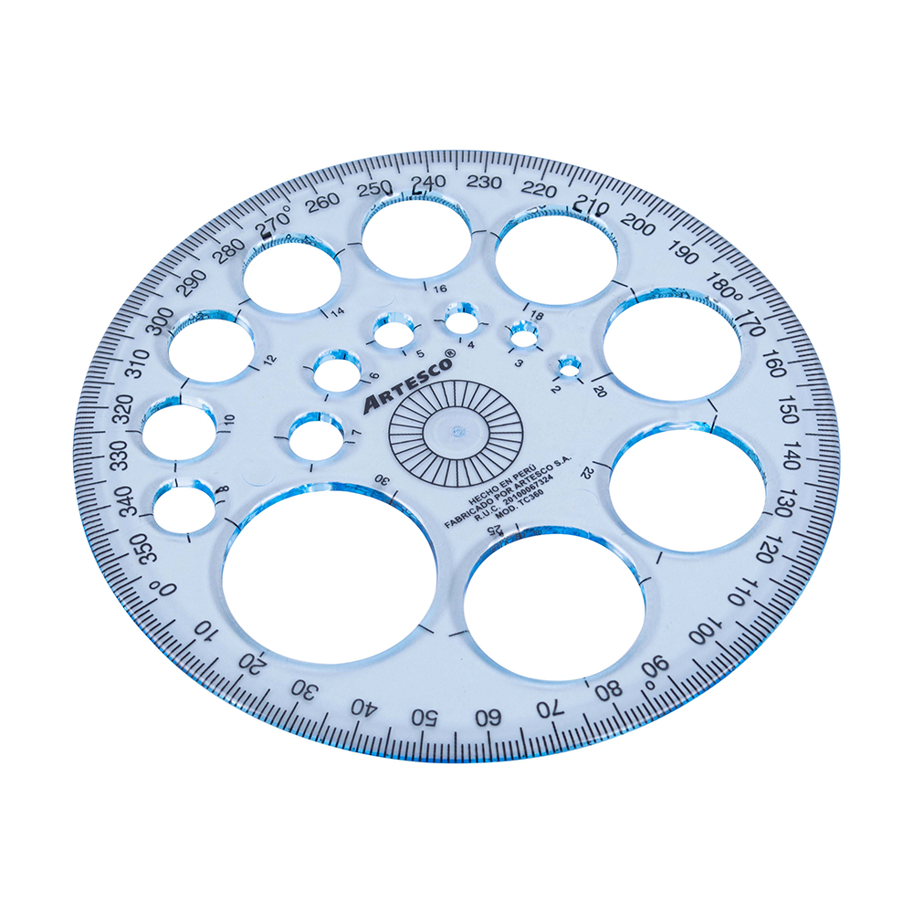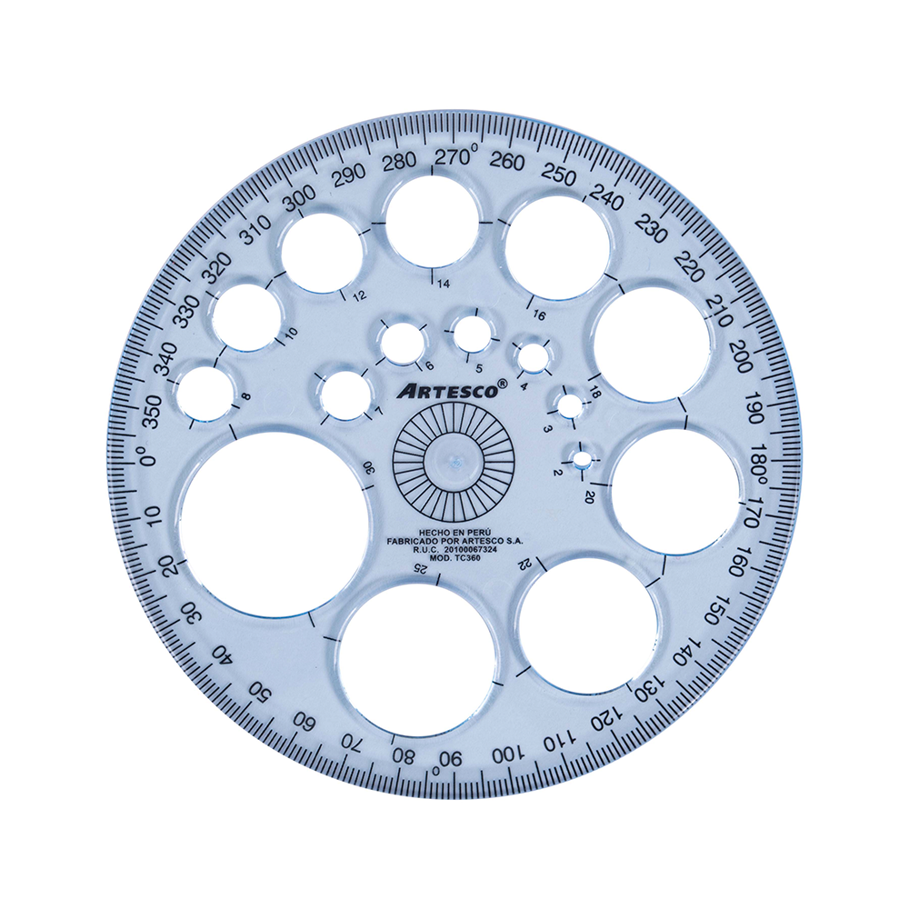 Transportador 360° + plantilla con 16 medidas de circunferencia.