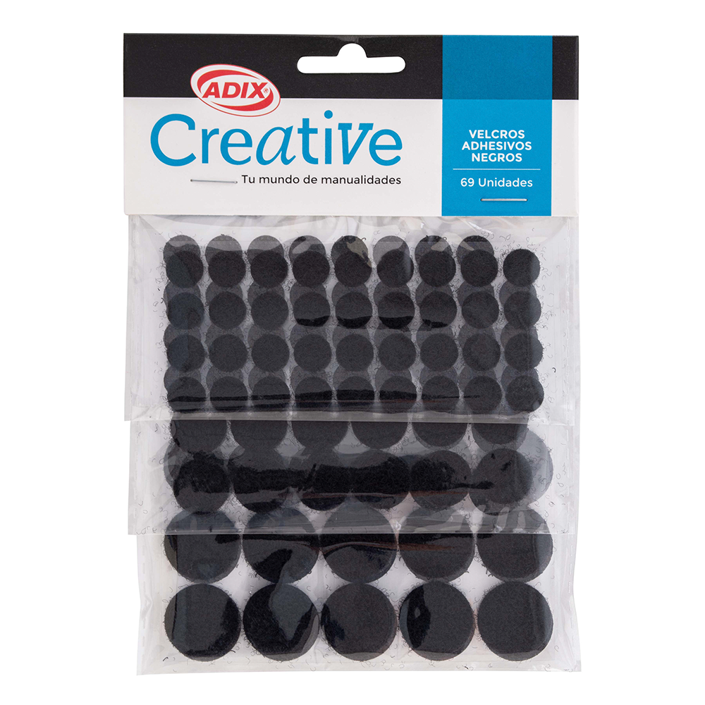 Crea y decora. Velcros 3 tamaños color negro. Cantidad: 69 unidades. Marca: CREATIVE.